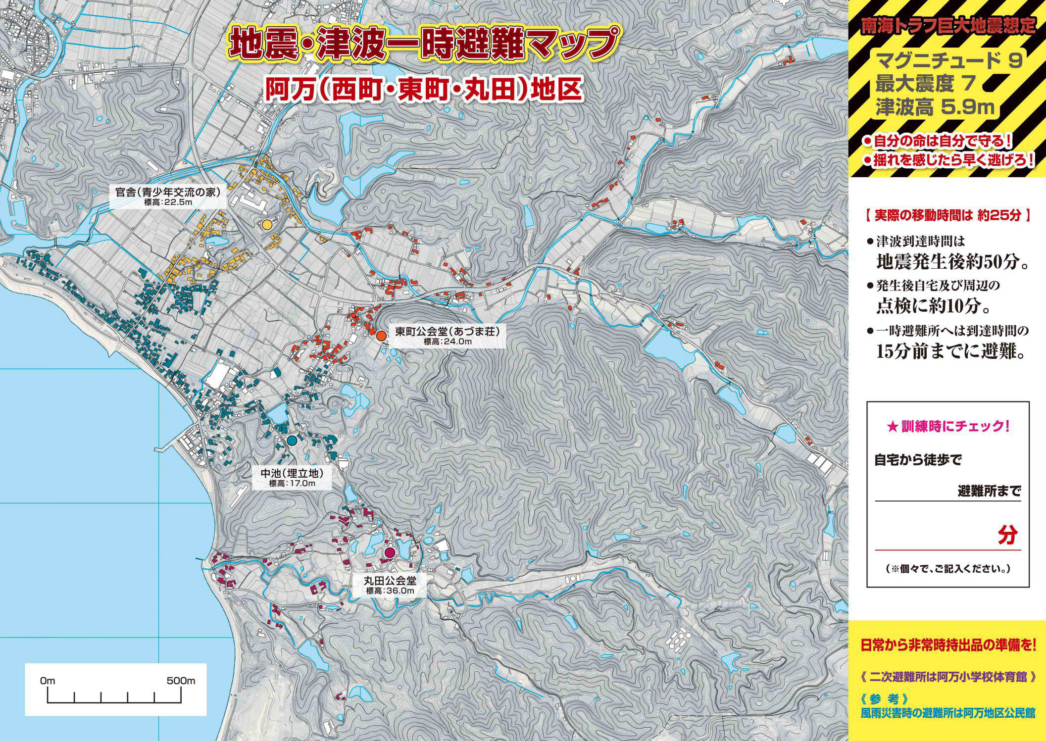 【阿万地区の地震・津波一時避難マップ】