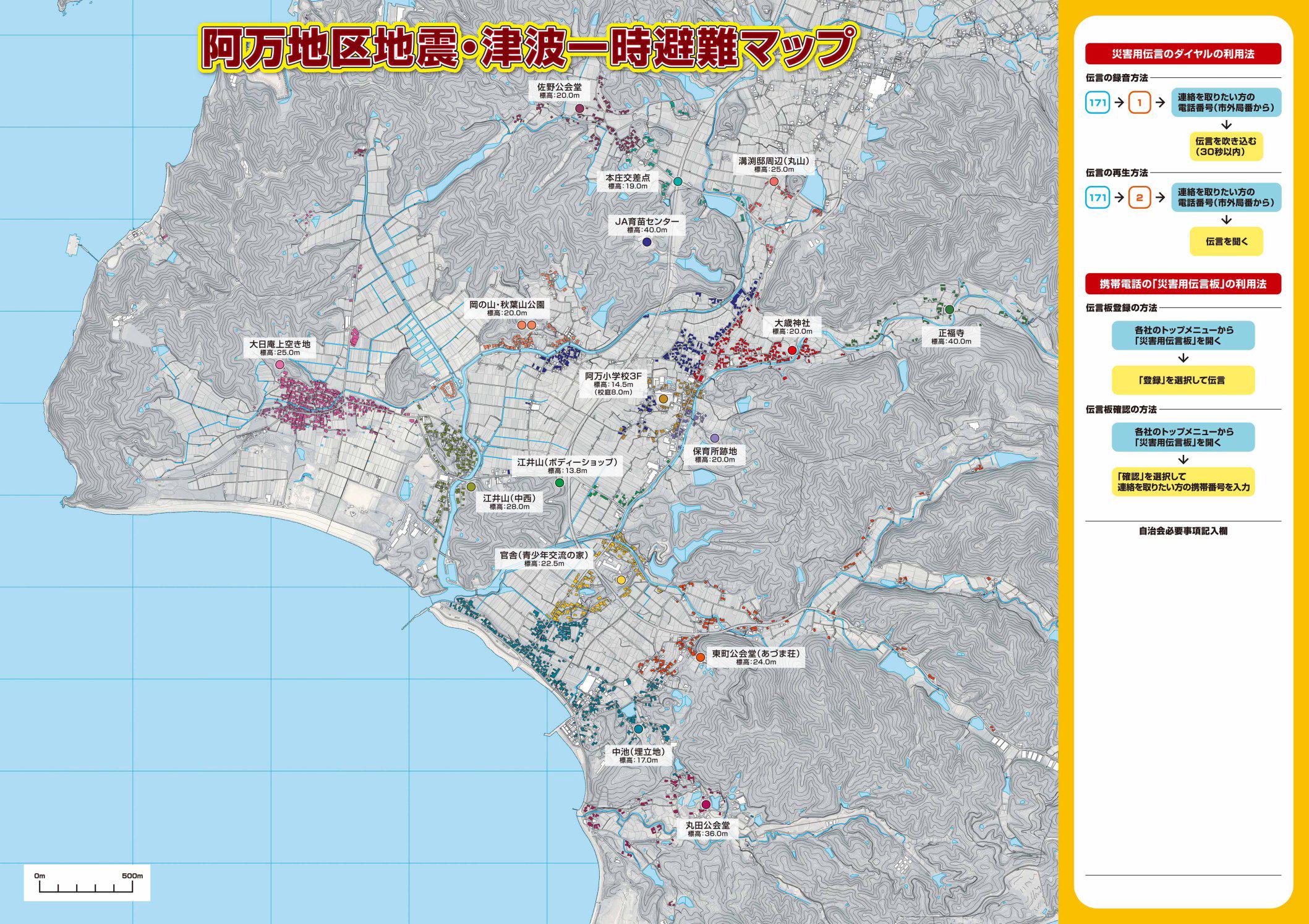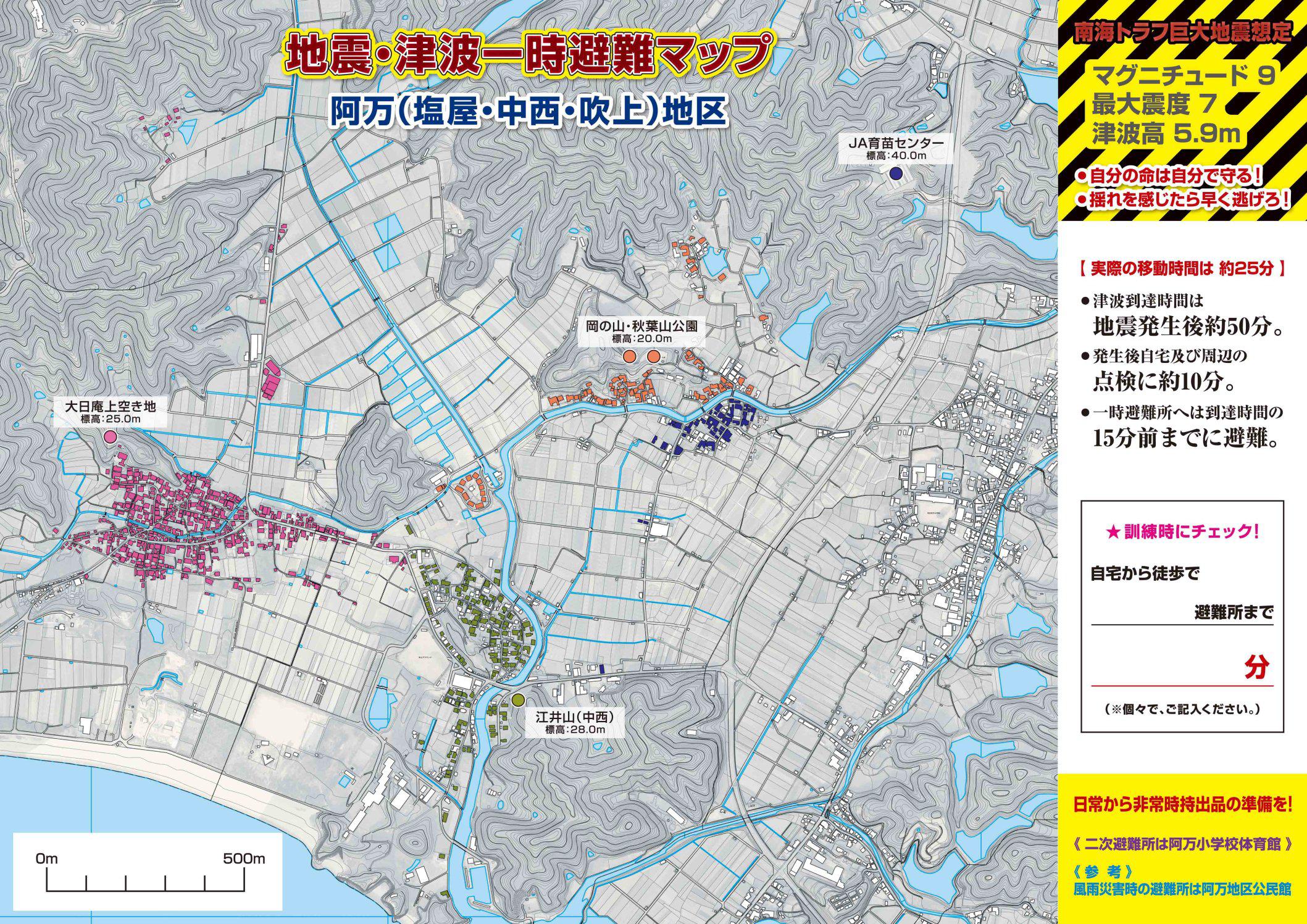【阿万地区の地震・津波一時避難マップ】
