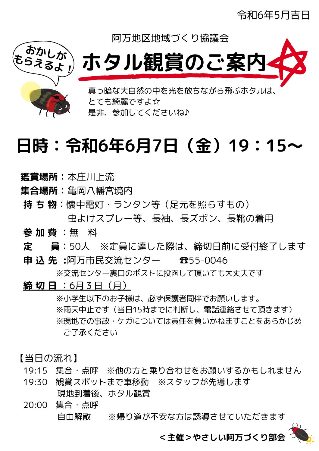 令和6年度「ホタル観賞会」のお知らせです。