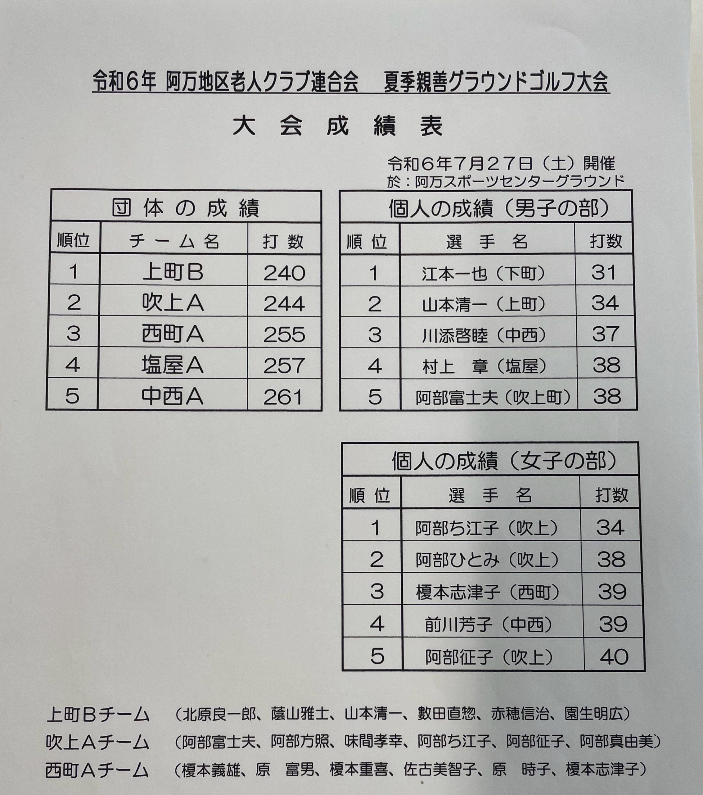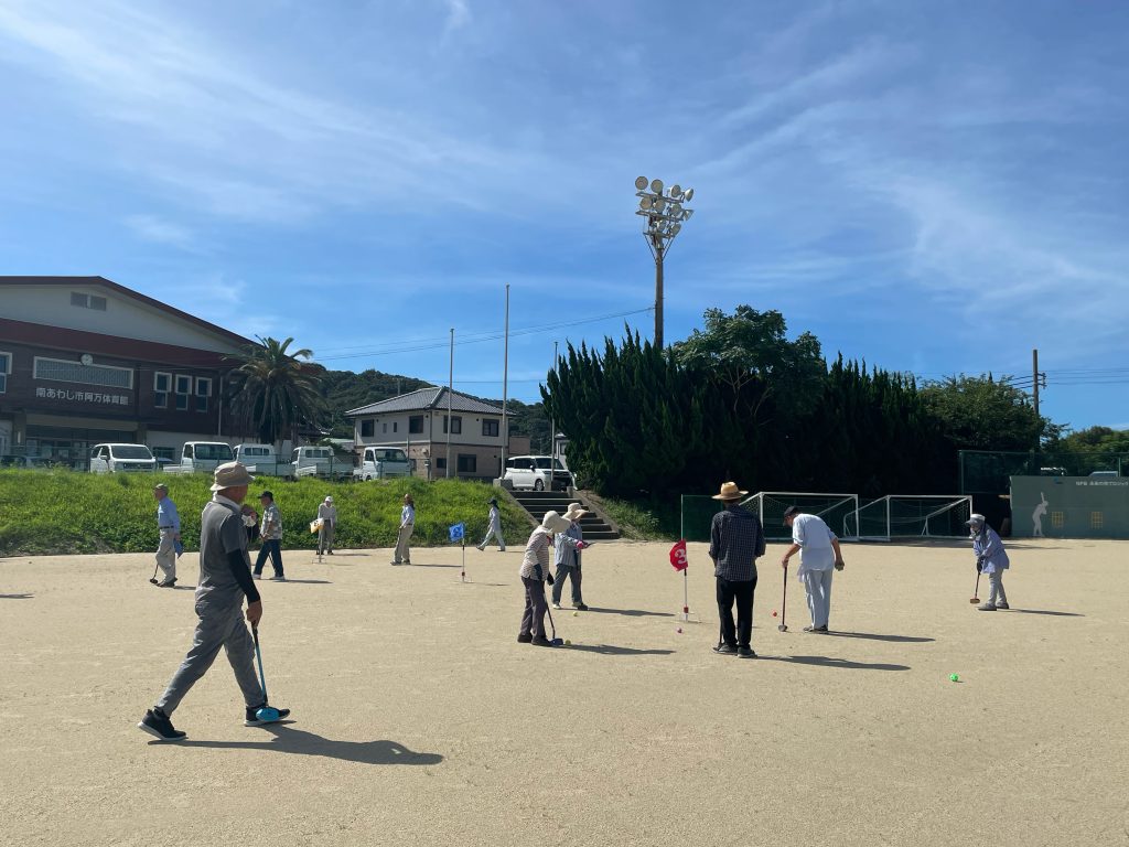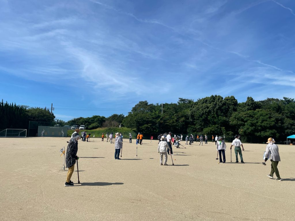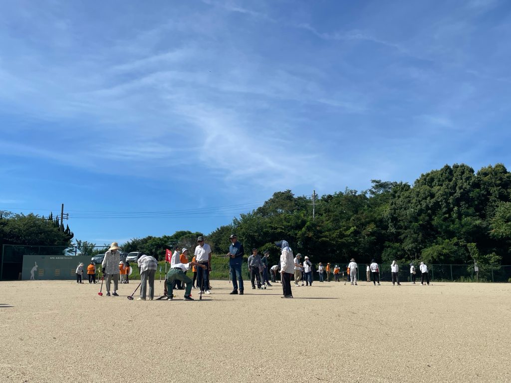 7/27(土)阿万スポーツセンターグラウンド(中西グラウンド)にて「阿万老連グランドゴルフ大会」が開催されました。こちらは阿万地区の老人クラブの皆さんが参加する大会となっております。