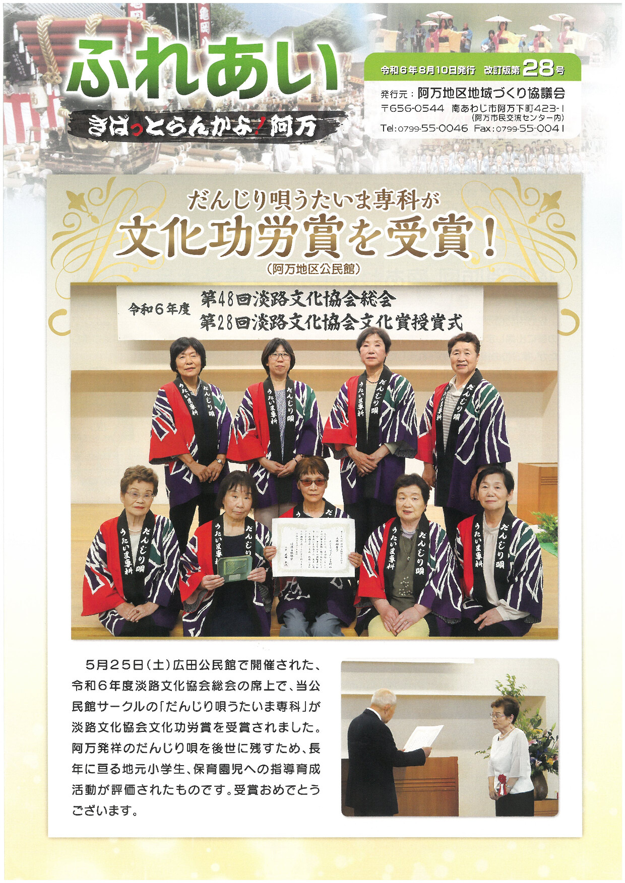 ・だんじり唄うたいま専科が文化功労賞を受賞