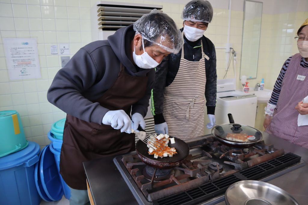 の料理を作りました。作った後は皆さんで試食タイム!「美味しい!短時間で作れてよかった!」などの声が聞こえました。参加された皆さん、やさしい阿万づくり部会の皆さんお疲れ様でした♪