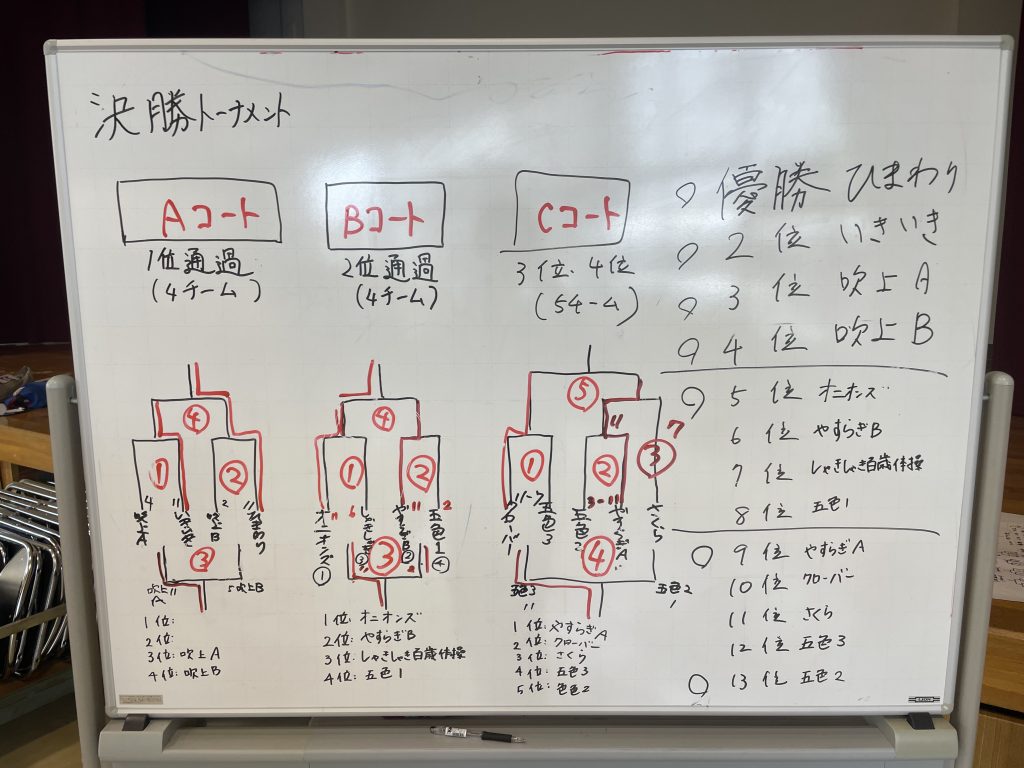 4/12(土)阿万地区公民館講堂にて「阿万・五色卓球バレー交流大会」を開催いたしました。阿万から8チーム、五色から5チーム、合計13チーム・80名の方が参加され4ブロックに分かれて優勝を争いました。今回は11点1セットマッチで行い、接戦になる試合も多く白熱した戦いが繰り広げられました。優勝は阿万ひまわりチーム、準優勝は阿万いきいき百歳体操チーム、3位は阿万吹上Aチームでした。参加された皆さんお疲れ様でした。